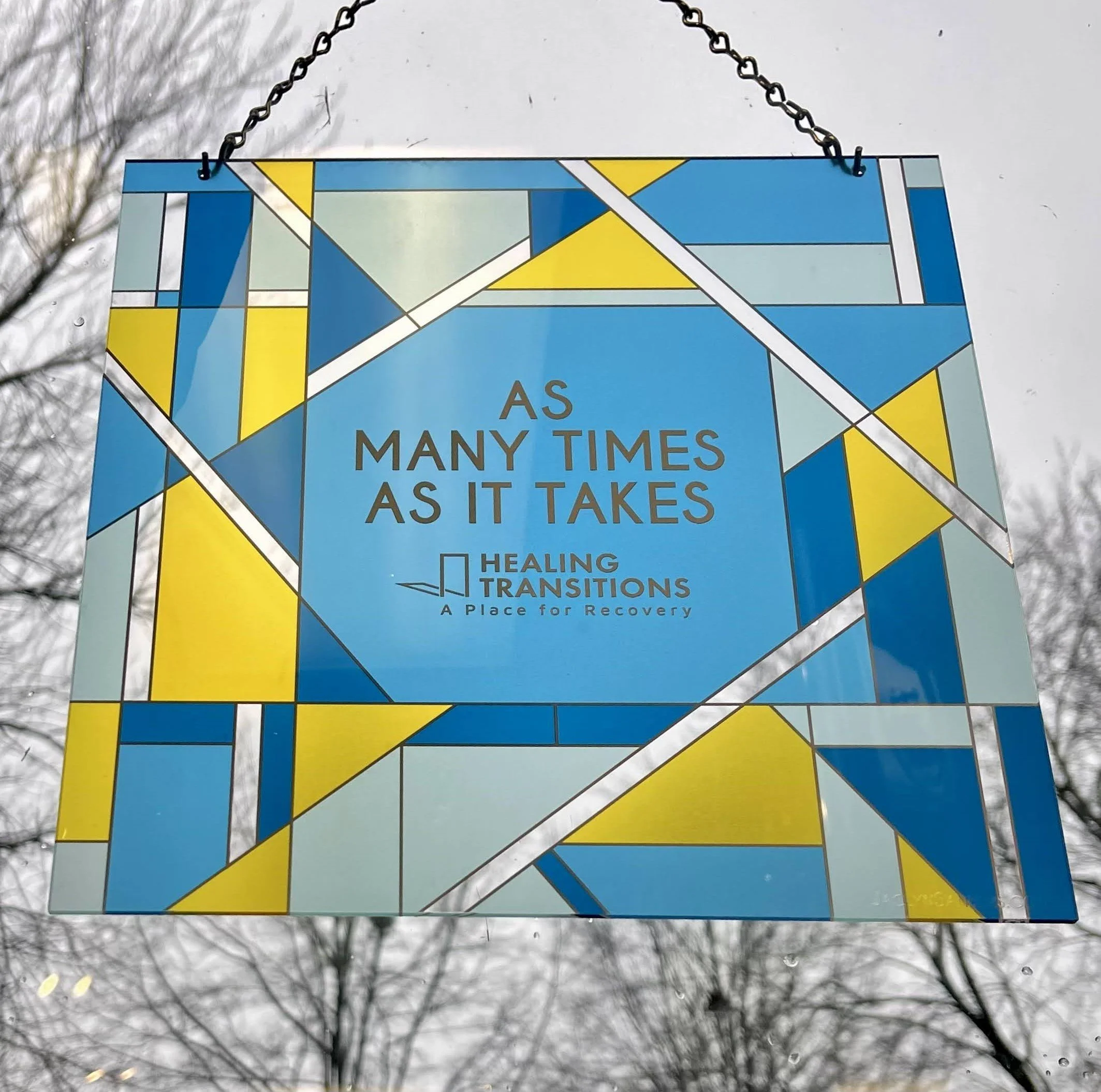 - Laser-cut and UV printed window hanging color catches represent transparency and transformation— core values of the organization
