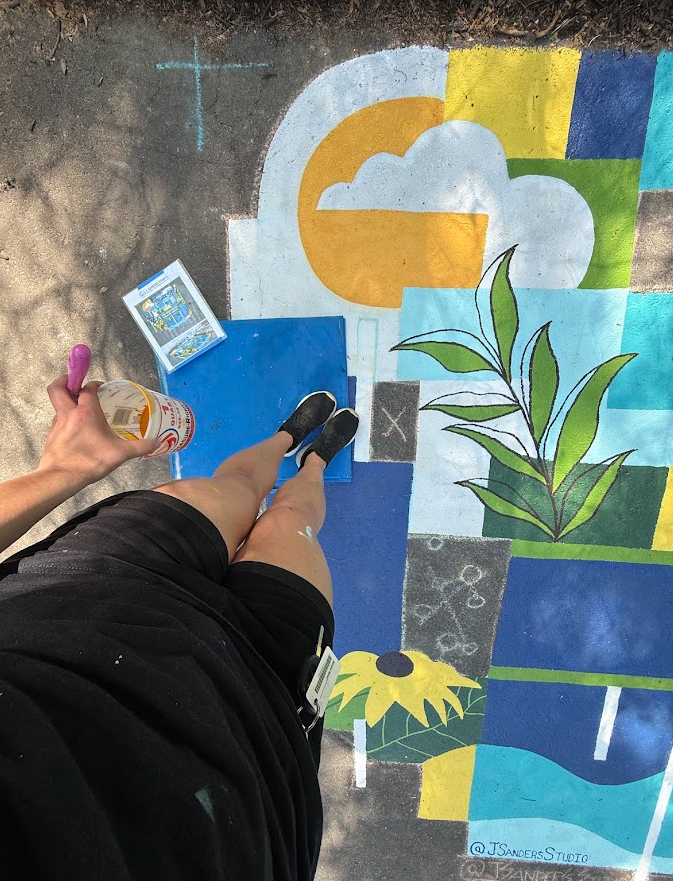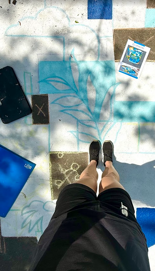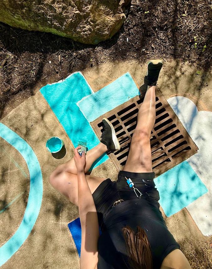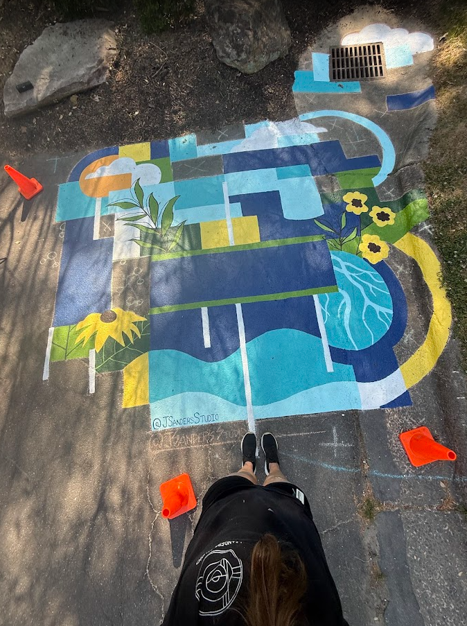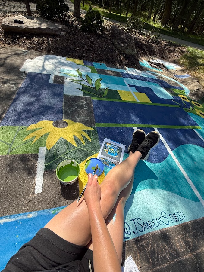 What drew me to this opportunity was the challenge of turning everyday infrastructure into a moment of discovery: using bold geometric abstraction, color blocking, and site-inspired imagery to reimagine a functional drain as a visual reminder of water cycles, local community, and our connection to the surrounding ecosystem.