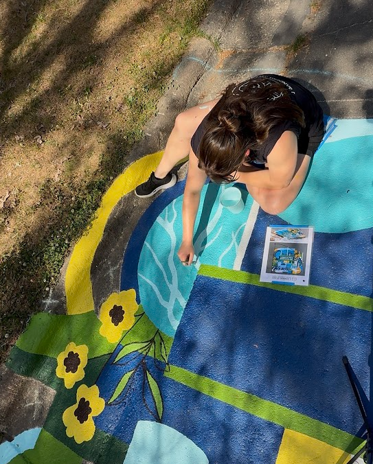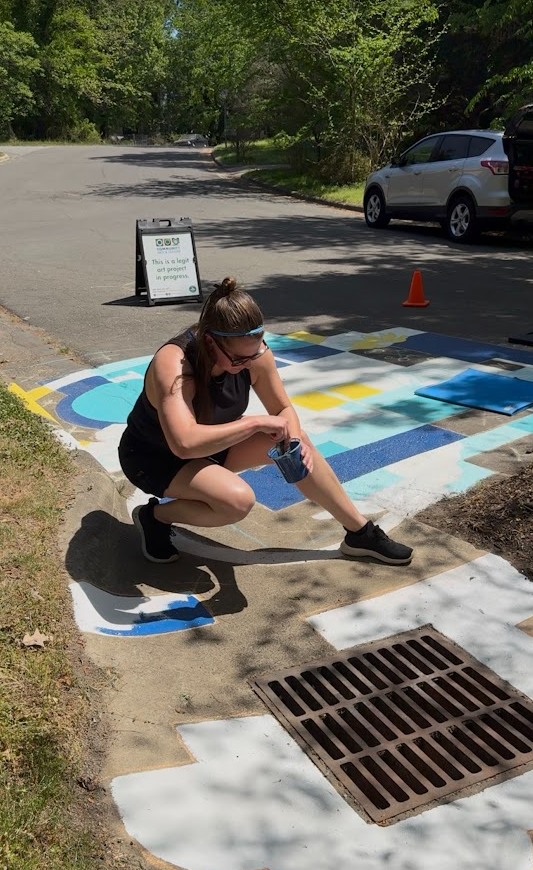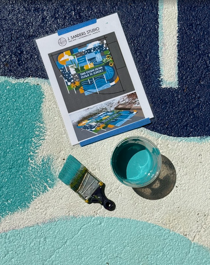 This storm drain mural project began as part of an open call from Chapel Hill Community Arts & Culture in collaboration with Chapel Hill Stormwater Management inviting Triangle-based artists to transform prominent sidewalk storm drains into vibrant, environmentally themed public artworks.